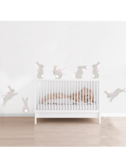 7 Stunning textured rabbit wall stickers.These beautiful rabbit wall stickers create a fantastic focal point in a child's nursery, bedroom or playroom. Produced using premium fabric material, the stickers are easy to apply, literally just peel and stick.Available in Grey, Taupe and White...