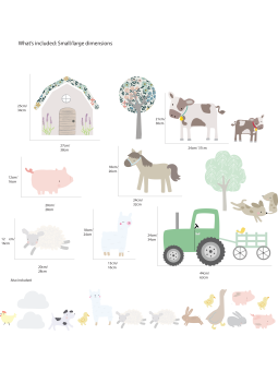 A charming , fun farmyard sticker scene created by Littleprints. Can be personalised with child's name These beautiful farm inspired stickers will transform a boring bedroom into one with character and charm. Dimensions when displayed as shown are: Small: W125cm x H81cm Large when displayed...