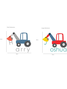 A charming personalised digger wall sticker by Littleprints. This customised digger fabric wall sticker will add charm and character as well as individuality to any child's room.Dimensions are dependent on name choice and therefore the sizing guides below are only approximates:Small: H32 x...