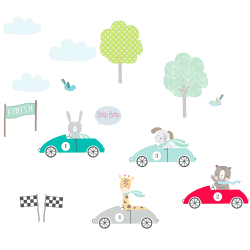 Little Racers Wall Stickers printed and cut on premium fabric material. A complete theme of stickers that can be grouped or separated when applied to the wall.